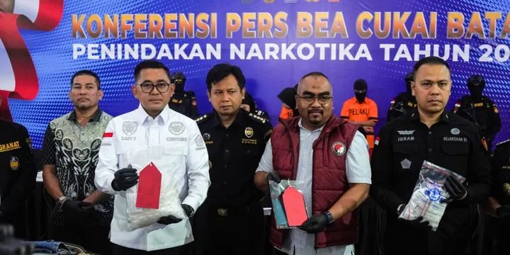 Batam, 09-05-2025 –Bea Cukai Batam bersinergi dengan BNN Provinsi Kepri dan Dirres Narkoba Polda Kepri gagalkan upaya penyelundupan narkotika di dua lokasi berbeda, yakni Pelabuhan Ferry Internasional Batam Centre dan Terminal Keberangkatan Domestik Bandara Hang Nadim. Dari kedua penindakan tersebut, diamankan dua orang pelaku beserta barang bukti berupa sabu dengan total berat 3.079,2 gram.